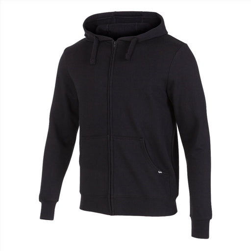 Open sweatshirt with zip and pouch pockets. Includes drawstring adjustable hood. Ribbed cuffs and hem for a comfortable fit. Logo on tape over pocket.